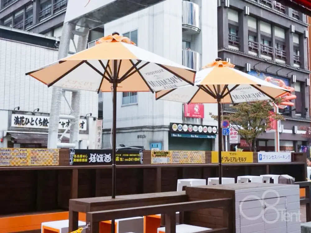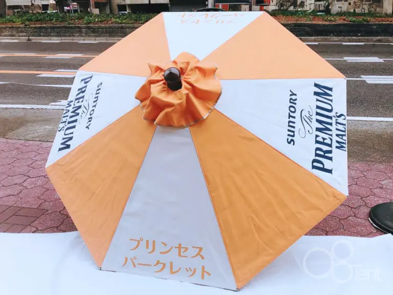 販売促進キャンペーン用の特注パラソルを製作 2025年9月24日 最終更新日時 : 2025年9月24日 08admin特注パラソルの詳細飲料メーカー様向けに、販売促進キャンペーン用の特注パラソルを製作いたしました。白×オレンジ色を基調とした天幕がイベントを盛り上げます。