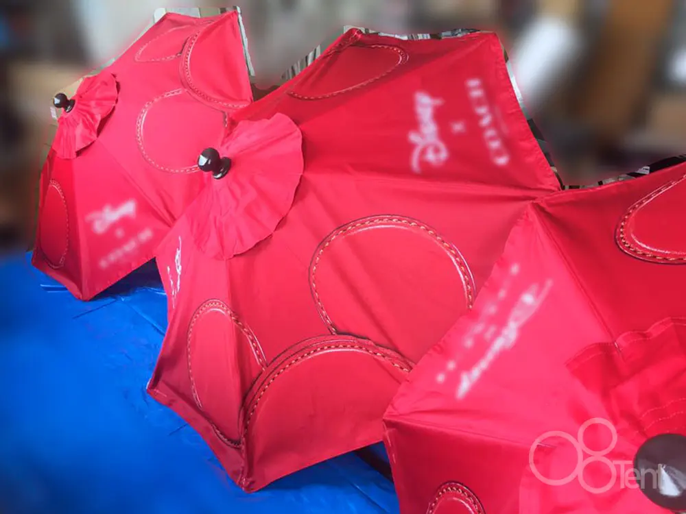 ベースには、どんなイベント会場でも使いやすいクラシックな「マーケットパラソル」を採用。設営・撤収に不慣れなスタッフの方でも直感的に扱えるシンプルな構造と、度重なる使用にも耐える堅牢なスチールフレームで、キャンペーンのスムーズな運営を足元から支えます。