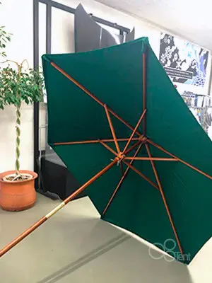 フレームにあえて天然の「木」を選ぶことで、パラソルが人工物として浮き立つことなく、まるで庭木の一本であるかのように風景に溶け込みます。その温かみのある質感は、周囲の緑や土、石といった自然素材と美しく調和します。