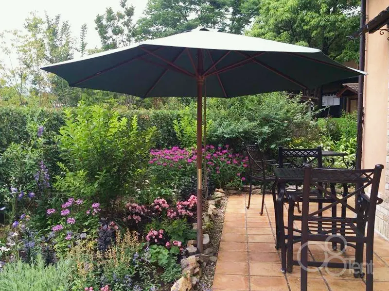 どんな庭にも馴染む、シンプルでクラシックな「マーケットパラソル」の形状が、流行に左右されない普遍的な美しさを演出します。