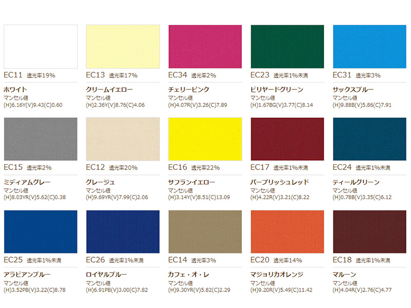 おすすめの用途 | 高級ホテル、個人邸、ブランド店舗 | カフェ、商業施設、ブランドカラー重視 | 西日が強い場所、テラス席、快適性最優先 |