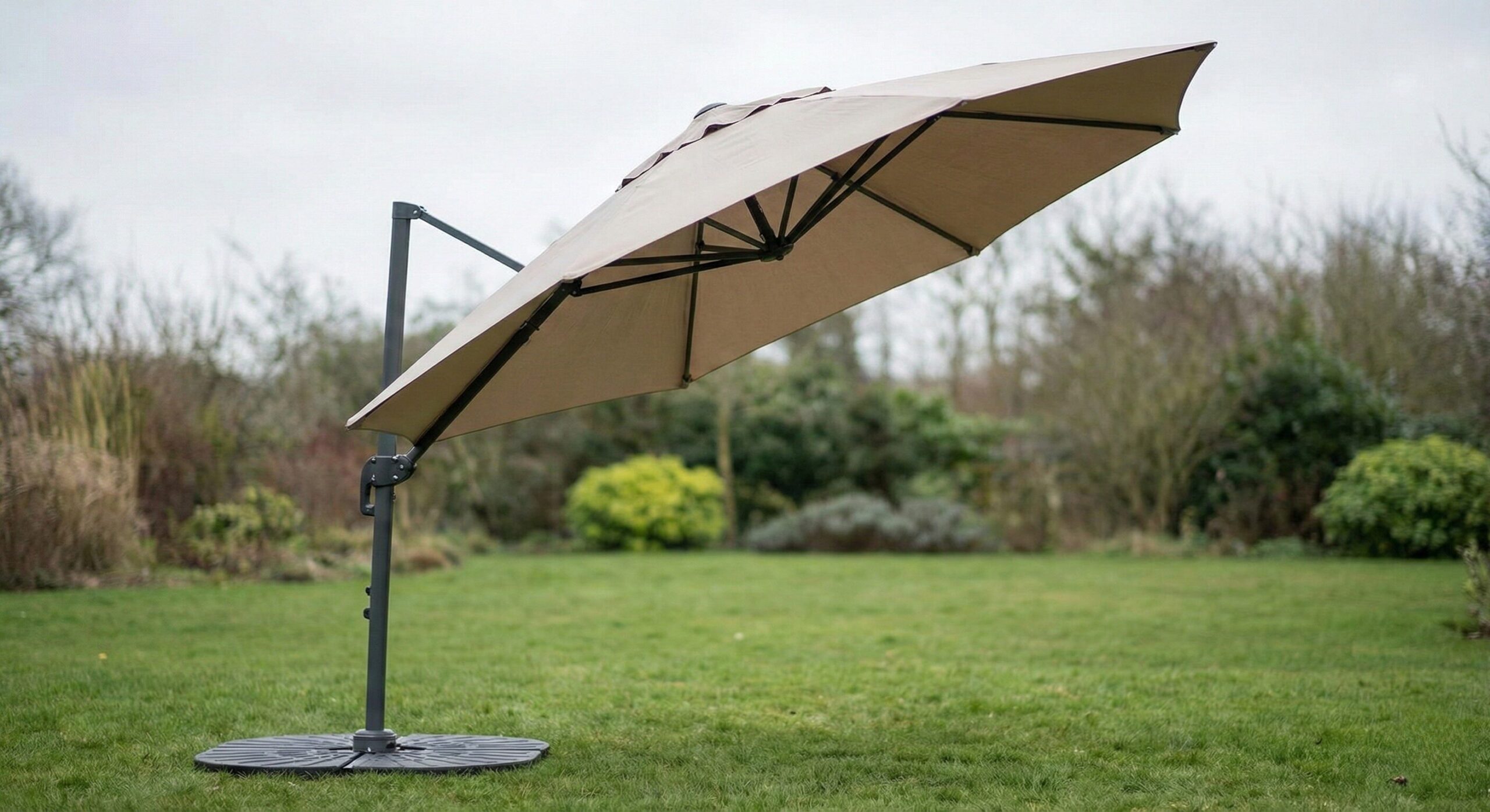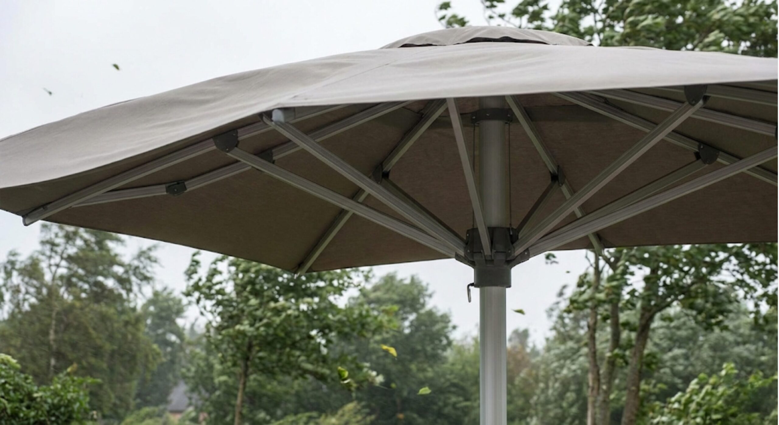 日差しを遮り、優雅な空間を作るガーデンパラソル。しかし、屋外家具にとって「風」は最大の天敵です。