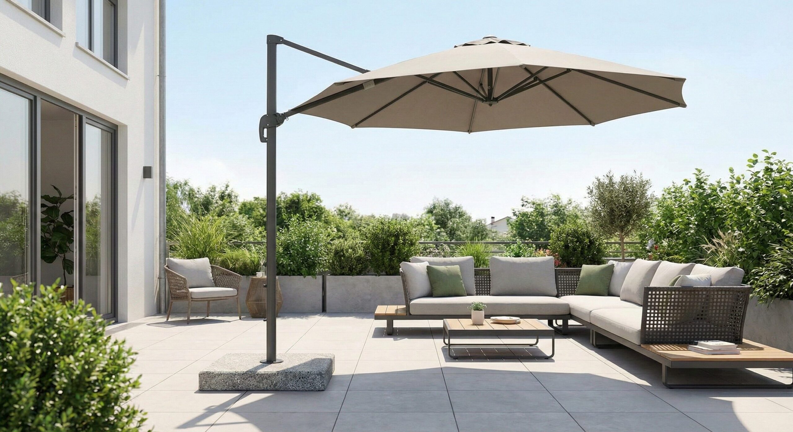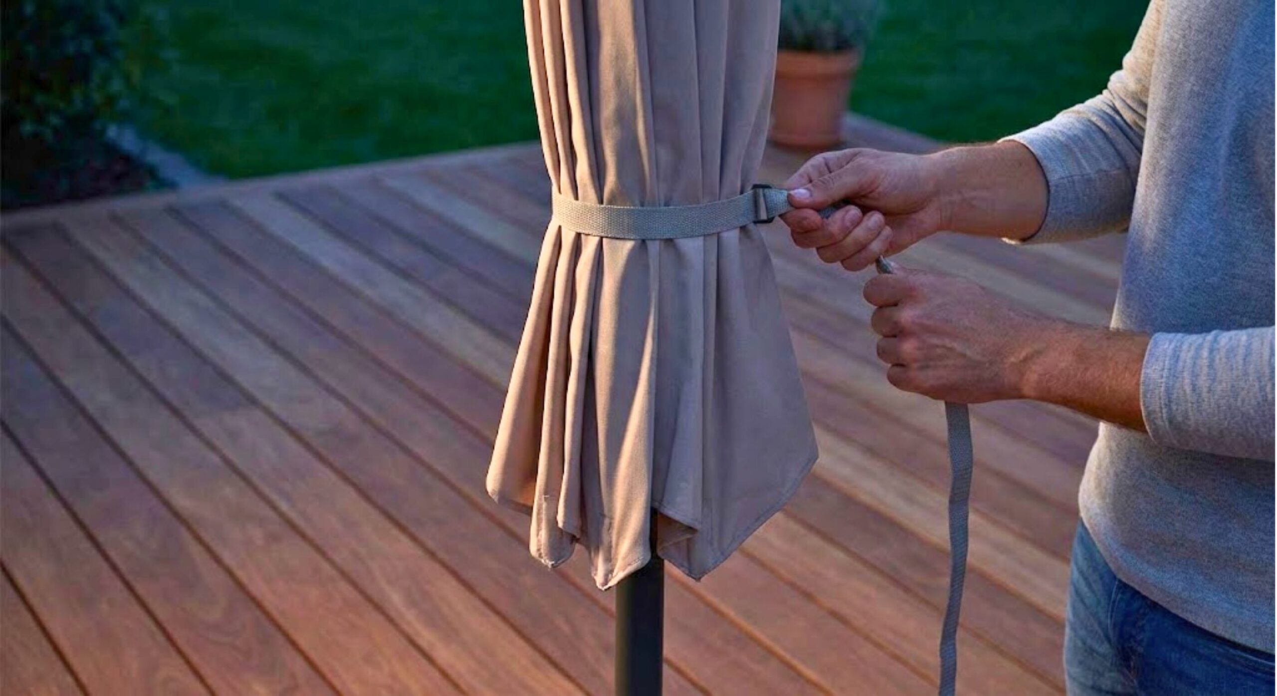 風に負けないテラス作り。ガーデンパラソルを安全に愛用するための対策ガイド