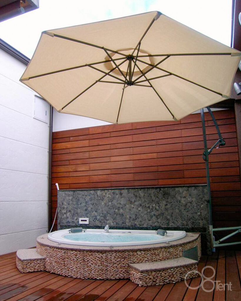 ハンギングパラソルの詳細 ハンギングパラソルを露天… 続きを読む: ハンギングパラソルを露天風呂用に施工 - スクエアパラソル生地の張り替え|経年劣化したパラソルの生地を新調